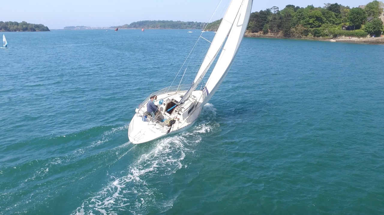 Il réagit bien à la barre, et est doux à barrer. Quand le vent monte, le bateau devient ardent, et il faut alors réduire le génois.