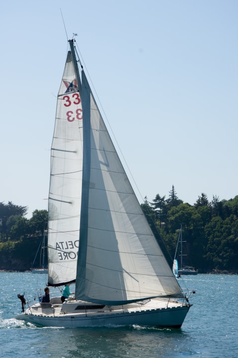 Le comportement du bateau est rassurant dans la brise, le First 32 passe bien dans la mer, et reste bien calé à la gîte.